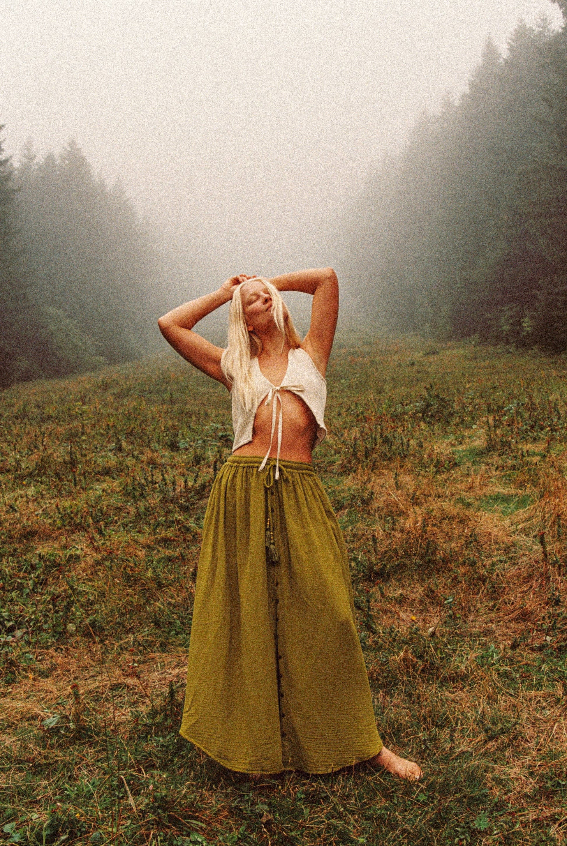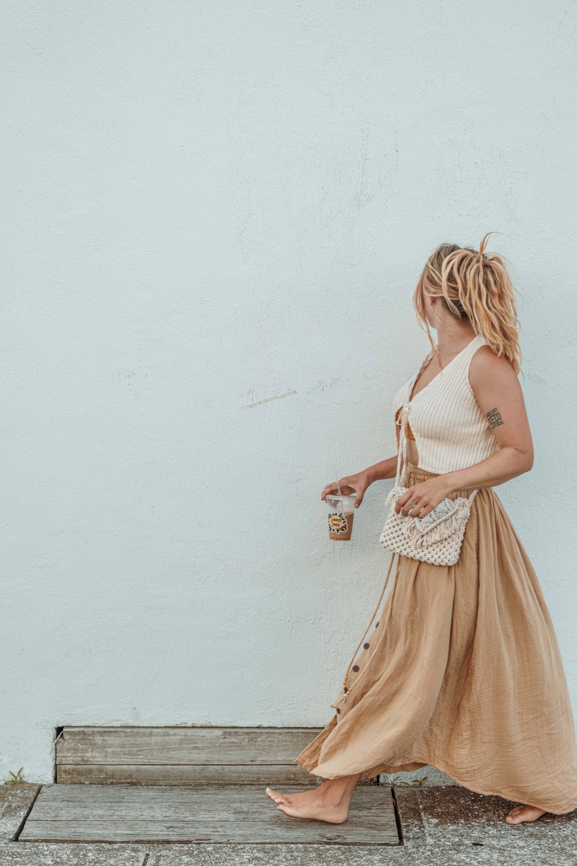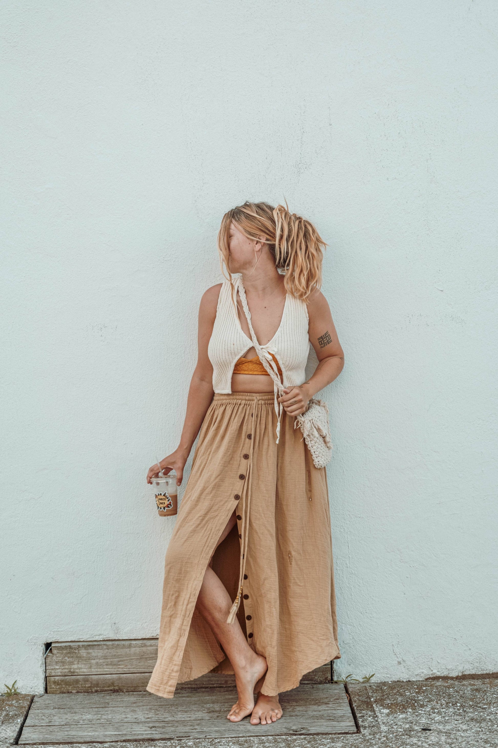 Pictured - Lauren is wearing size M/L and has a 36" bust. She has paired the vest top with our Lani Organic Cotton Bamboo Skirt in Lark and our Macrame Purse.