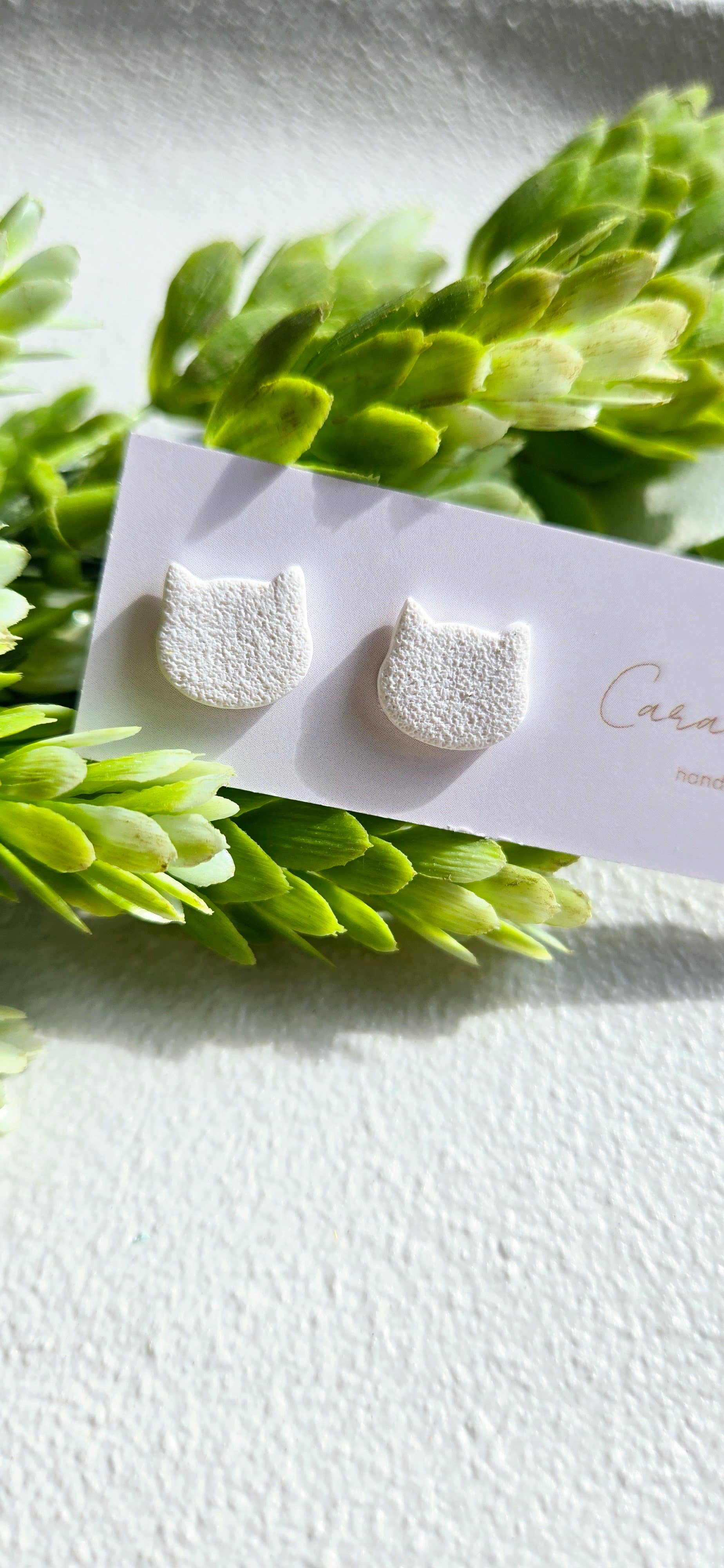 These stud earrings are handcrafted from polymer clay. The neutral colors and clean shape make it a perfect daily accessory.