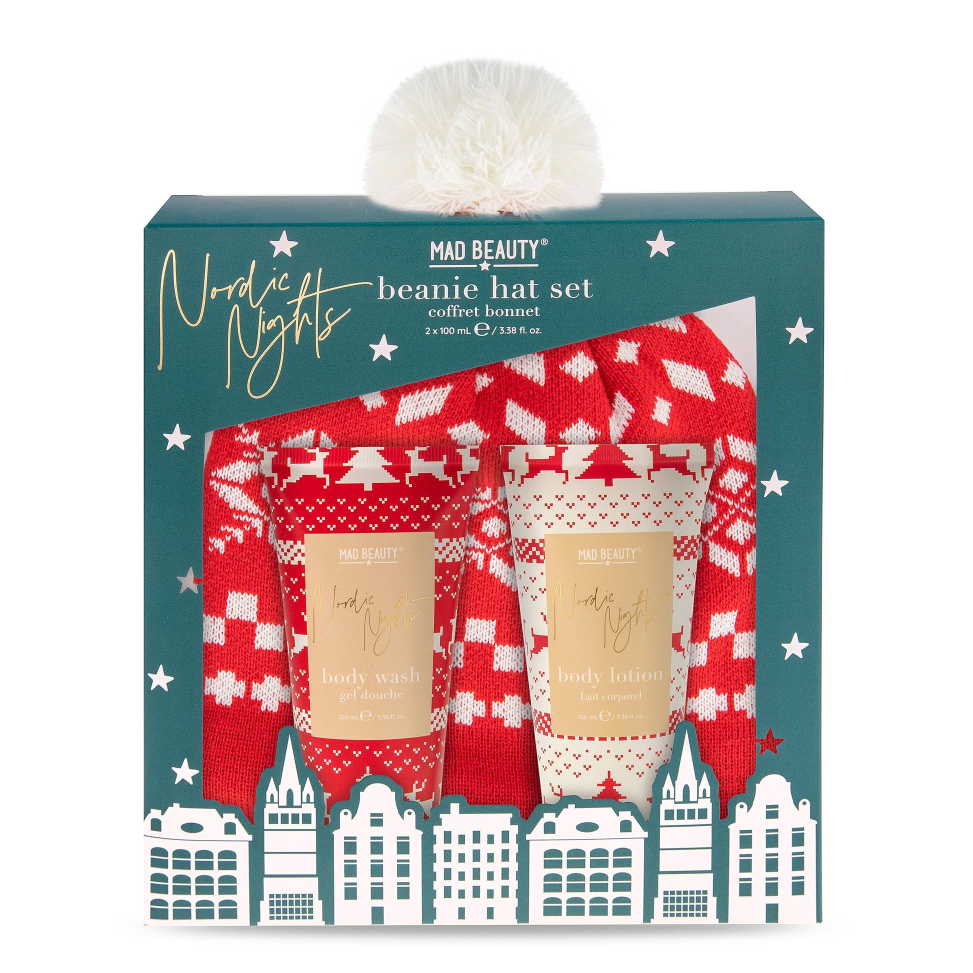 Inspired by Nordic nights, get warm and cosy with this set which includes a gorgeous fair isle beanie hat along with a body wash and lotion. Fragranced with sweet vanilla and amber, indulge in a warming shower before braving the outdoors in your stylish hat.