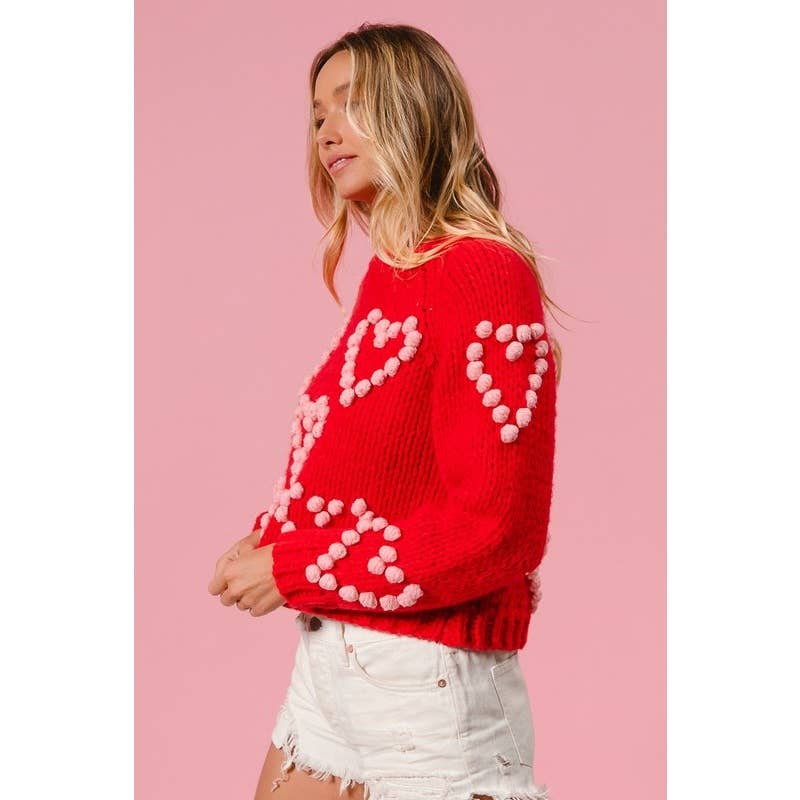 POM POM HEART TEXTUREED VALENTINE SWEATER